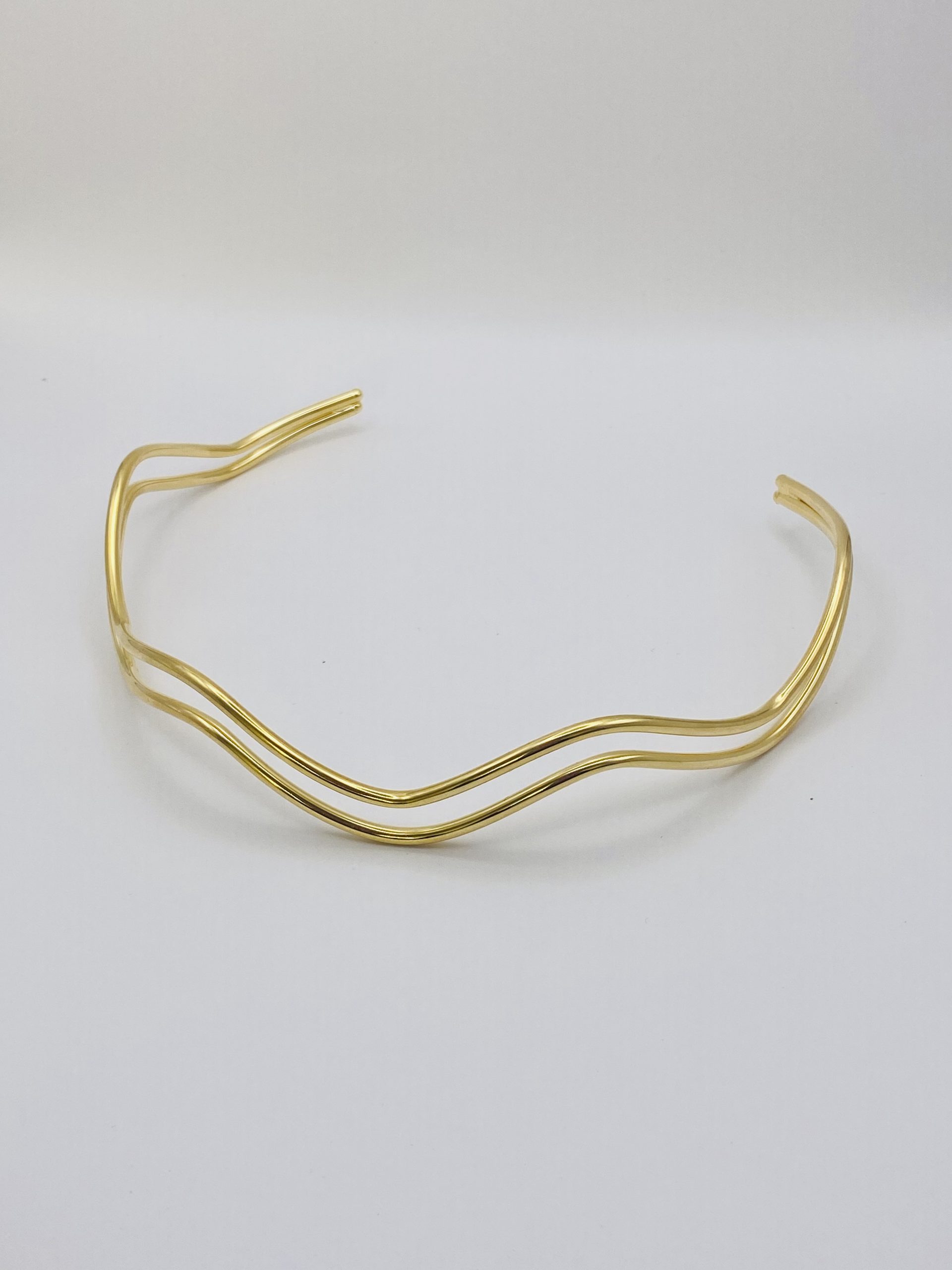 Choker chapado en oro de 22 quilates con una base de materiales nobles e hipoalergénicos. Con formas curvas y un acabado impecable el cual aporta elegancia y estilo.